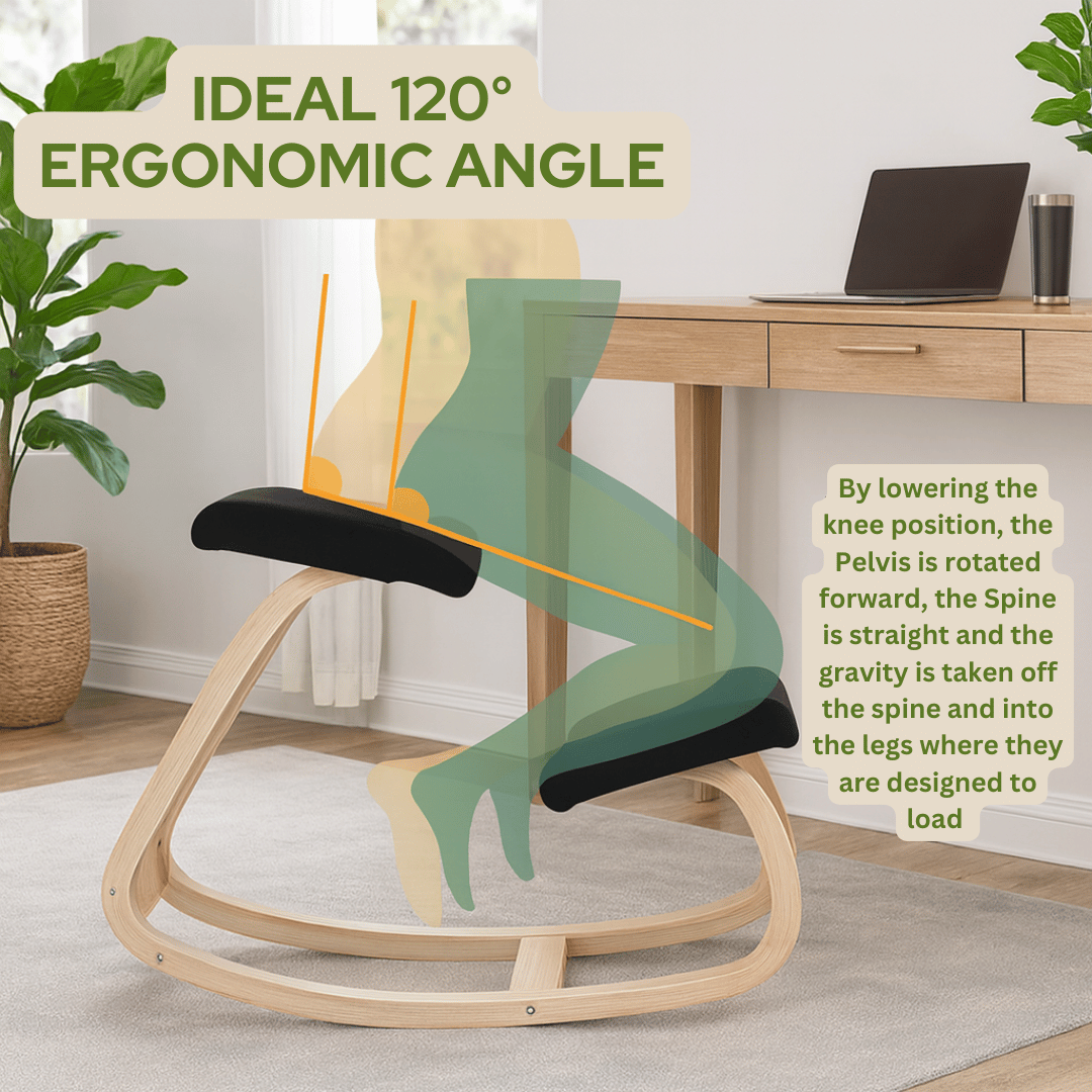 Designed to support natural spinal alignment, our ergonomic kneeling chair helps you reduce back pain, boost focus, and maintain energy all day long. Unlike traditional office chairs that compress your spine and hips, this innovative design encourages an open hip angle, engages your core, and keeps you upright — so you can work in comfort while protecting your posture.